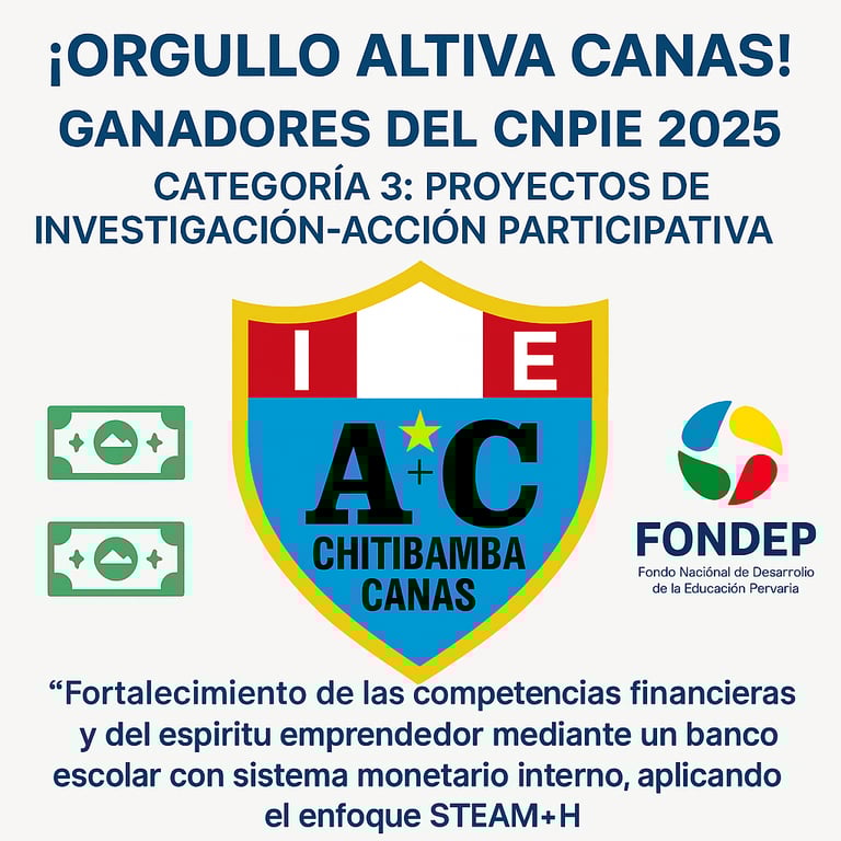 La Institución Educativa “Altiva Canas”, ubicada en la comunidad de Chimpa Tocto Orccocca – distrito de Checca, se complace en anunciar con gran orgullo que ha sido una de las ganadoras del Concurso Nacional de Proyectos de Innovación Educativa (CNPIE 2025), organizado por el Fondo Nacional de Desarrollo de la Educación Peruana (FONDEP), en la Categoría 3: Proyectos de Investigación-Acción Participativa para la Innovación Educativa.
