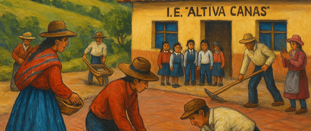 La Institución Educativa “Altiva Canas”, ubicada en la comunidad de Chimpa Tocto Orccocca, anuncia con orgullo y esperanza la realización de una Jornada de Faena Comunal con Prácticas Ancestrales denominada: 🎉 “Ayni por nuestra Institución Educativa: Honremos a nuestros niños, sanemos nuestra escuela”