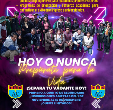 Aprovecha esta oportunidad para brindarles a tus hijos una educación que los formará para el futuro. En la IE Altiva Canas, estamos comprometidos con el desarrollo académico, personal y profesional de cada estudiante.